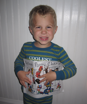 Needless to say, Kellen earned enough stickers to fill up his potty chart over the weekend. That chart has been a huge incentive for him, and he was super excited about going to pick out a new choo-choo train at the store (his promised reward). I think the chart actually worked better than the Starbursts. The candy bribe was great at first, but then he actually got tired of them. The worst part about that since we had a giant bag full of Starbursts in our pantry, I ended up eating a ton of them myself! One potty-training kid = one mama who needs to work off a few thousand calories. Not cool.